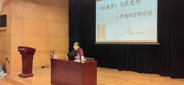 讲座聚焦张爱玲与《红楼梦》之间深切的文学渊源与学术价值。万燕教授从三个层面循序渐进地展开阐述:首先,系统梳理了张爱玲长达数十年的“红楼”研究历程与其学术贡献;其次,着重剖析了其在《红楼梦魇》中提出的“红楼梦未完”等核心观点;最后,以作家之眼,解读了张爱玲对《红楼梦》创作艺术所作的独到诠释。万燕教授在讲座中强调,张爱玲对《红楼梦》的研究不仅具有重要的学术价值,更为当代读者提供了理解古典文学的新视角。她勉励在场学子:一要精读文学经典原著,夯实人文基础;二要培养独立思考能力,提升学术素养;三要注重传统文化与现代生活的创造性转化。